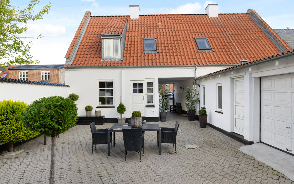 Bag forhuset, hvor de tre lejligheder ligger, finder du den hyggelige flisebelagte baggård og villaen, som ligger tilbagetrukket fra gaden i rolige omgivelser. Her kombineres bynær beliggenhed med en hjemlig, privat atmosfære.