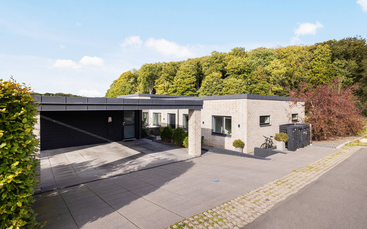 På Præstelunden 39 får I en moderne funkisvilla, hvor både arkitektur og beliggenhed skiller sig ud. Med 220 m² bolig fra 2017, placeret direkte ud til sø og skov, kombineres æstetik, funktionalitet og naturnærluksus i en bolig, der giver plads til hele familien.
