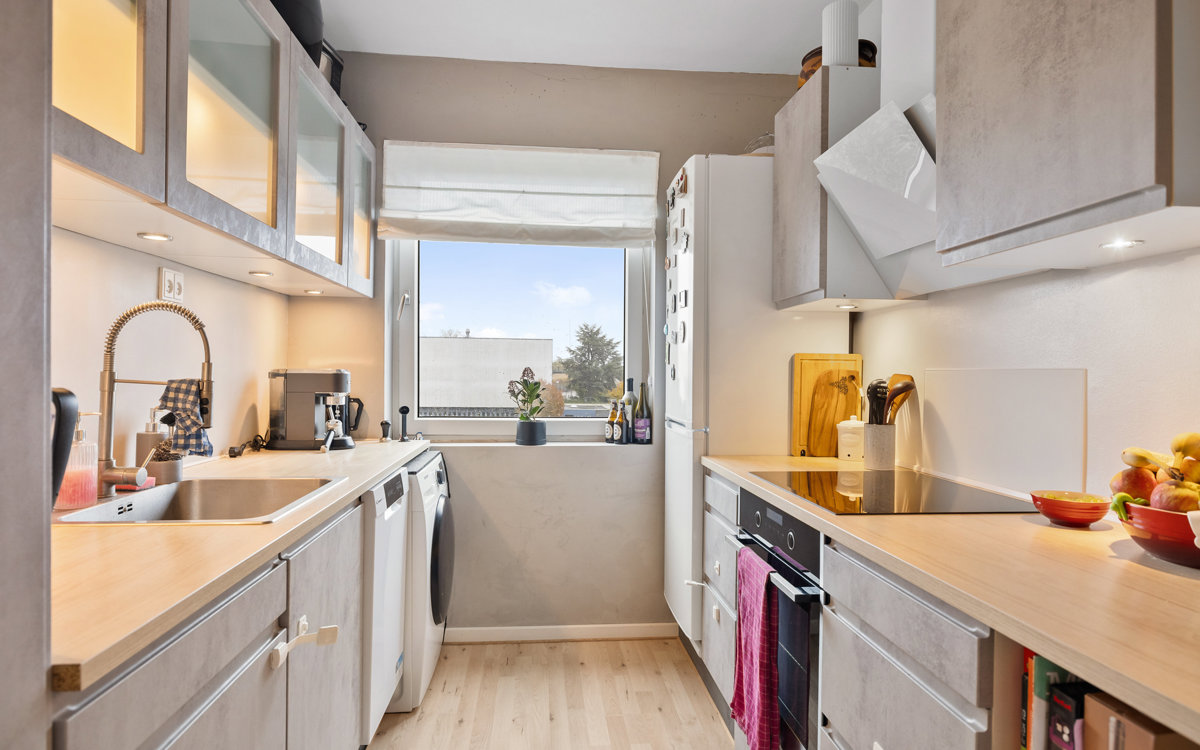 Velkommen til Rundhøj Allé 105, 2. tv. – en indflytningsklar og moderniseret 4-værelses lejlighed med altan Lejligheden byder på en lys og rummelig stue med direkte udgang til altanen, hvor du har fin udsigt til fælles legepladsen – perfekt til både afslapning og overblik over børnenes leg. Hertil kommer tre gode soveværelser, et flot og stilrent køkken med god skabs- og bordplads, samt et badeværelse med bruseniche. En rummelig fordelingsentré binder det hele praktisk sammen og gør lejligheden velegnet til både familier, par og singler, der ønsker god plads. Du bosætter dig i et dejligt område, hvor der er kort afstand til det meste bl.a. Rundhøjcentret med dagligvarebutikker, apotek og andre praktiske faciliteter, skoler, daginstitutioner, strand og skov. Derudover er der kun omkring 5 km til Aarhus C, som du nemt kan komme til med bus eller cykel. Kort sagt: en skøn, moderniseret lejlighed i et dejligt område med kort afstand til både hverdagens gøremål, natur og Aarhus midtby.